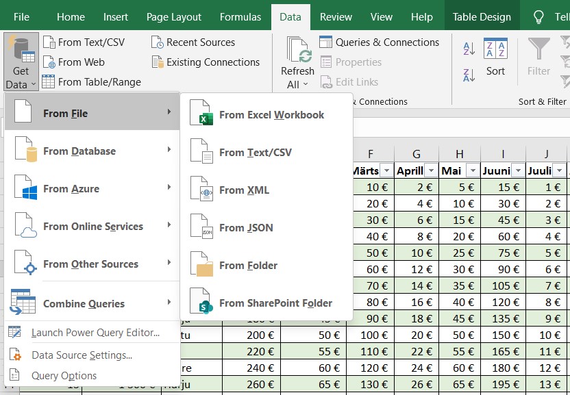 Lisaks lihtsamate graafikute loomisele on meil olemas kompetents luua täiesti automatiseeritud raporteid Exceli liidese power query abil. See annab võimaluse ettevõttele luua raportit kasutades erinevaid algallikaid ning andmeid. Ühtlasi võimaldab power query ühendada suuremaid andmehulkasid, luua vahele tingimusi, valemeid või erinevaid käsklusi ning tulemuseks on üks ülevaatlik raport, mida saab iga kord uuendada vaid refresh nuppu vajutades.